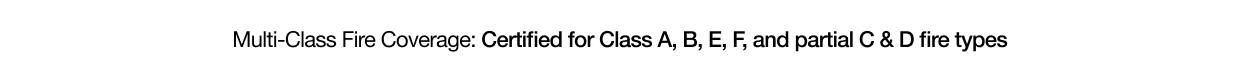 Certified for Class A, B, E, F, and partial C & D fire types, Blazon Fire meets the highest international standards for fire safety and environmental protection.